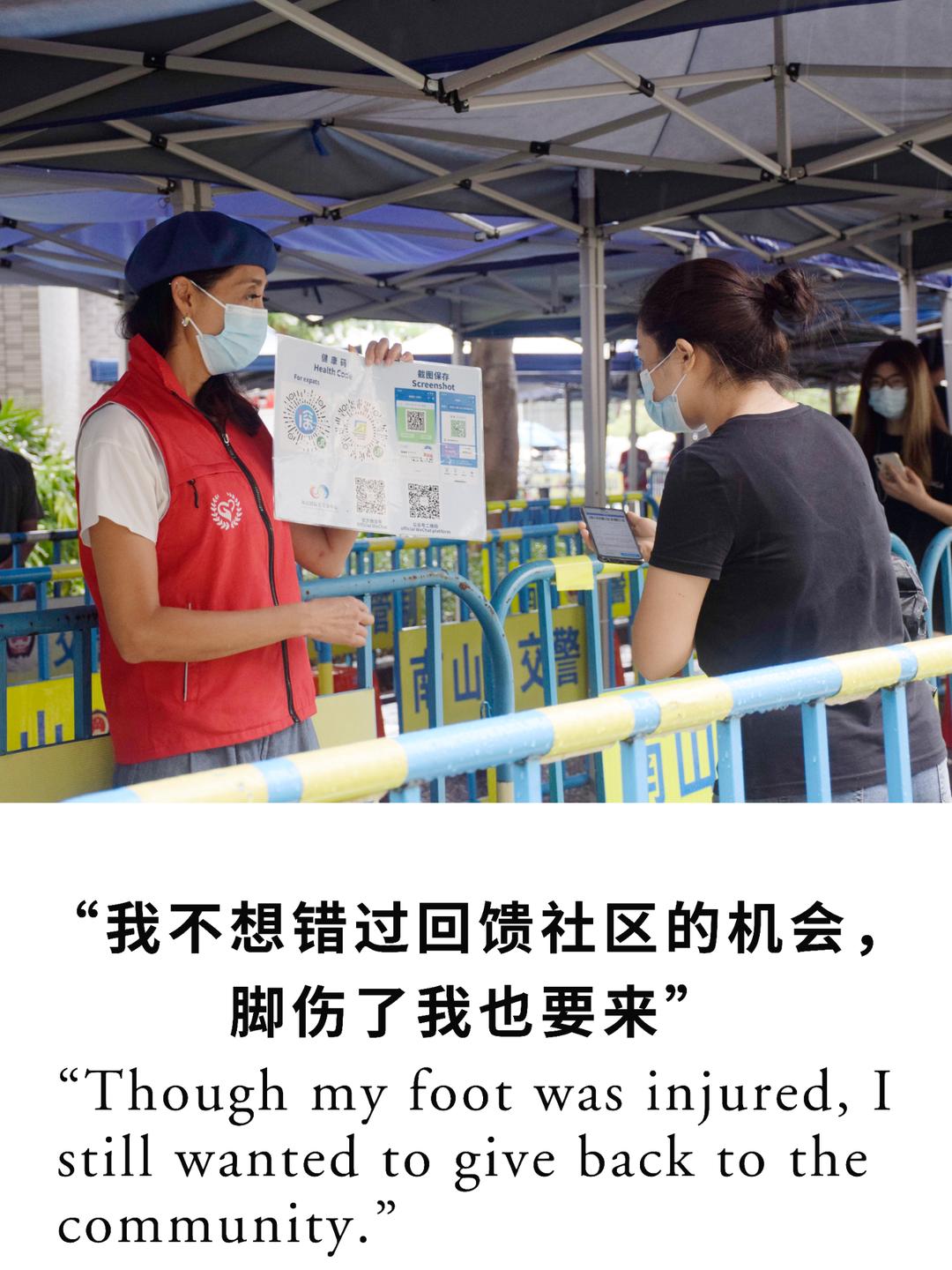 When we were recruiting volunteers for the vaccination site, Susan, a Canadian volunteer, immediately signed up. Her right foot was injured at that time, but she said, "I feel like I'm getting a lot of service here, and I want to do something to give back to the community."