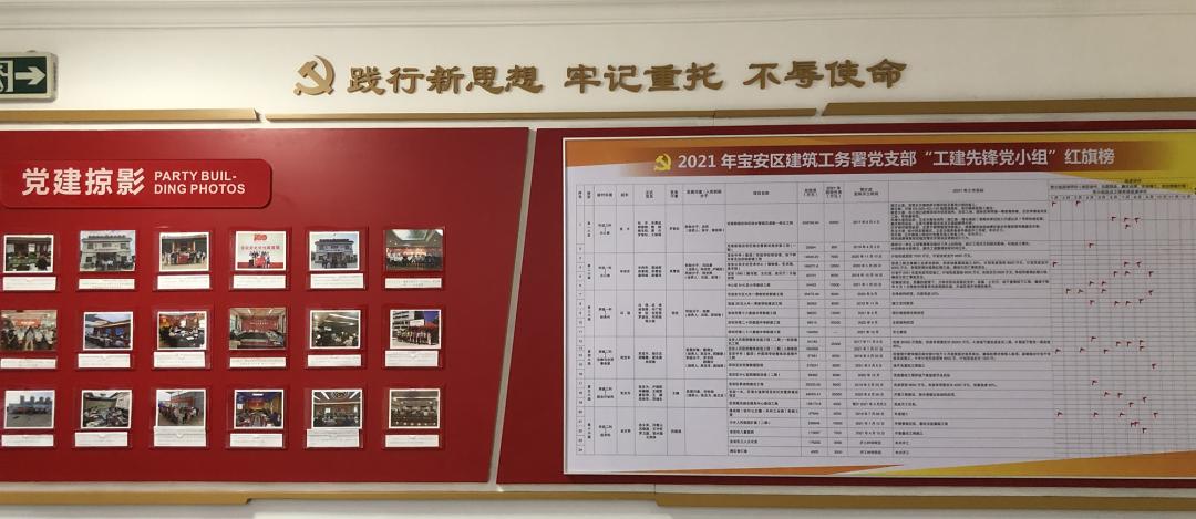 注重队伍建设,打造党建特色。一是强化党建工作创新,在打造机关党建品牌上走前头。在坚持延续“党建+工程建设”工作模式的同时,探索机关党组织管理工作创新,打造宝安区建筑工务署特色党建品牌。自2017年以来已相继已建立空港新城项目、宝安人民医院及宝中集团外国语学校整体改造项目、宝城39区九年一贯制学校项目、宝安“一水”等拆迁安置房建设项目4个临时党支部。组织各工建先锋党小组深入开展机关党建工作调研活动,通过调研探索“党建带工建”工作新思路、新方法,切实推动党建成为工建内推力;总结归纳党建工作创新思路,梳理形成党建工作创新管理模式,形成有质量、有影响、可参考的党支部工作法。二是推动党建与业务高度融合,在服务中心工作上走前头。牢固树立“抓党建促业务、抓业务促党建”观念,找准机关党建与业务工作的切入点,谋划业务工作时要同步谋划部署党建工作,将党建工作融入到业务建设全过程。在延续“党建+工程建设”工作模式的基础上,继续开展季度、月度红旗榜评比,压实党员责任、加强党建阵地建设,推进党建、工建深度融合。