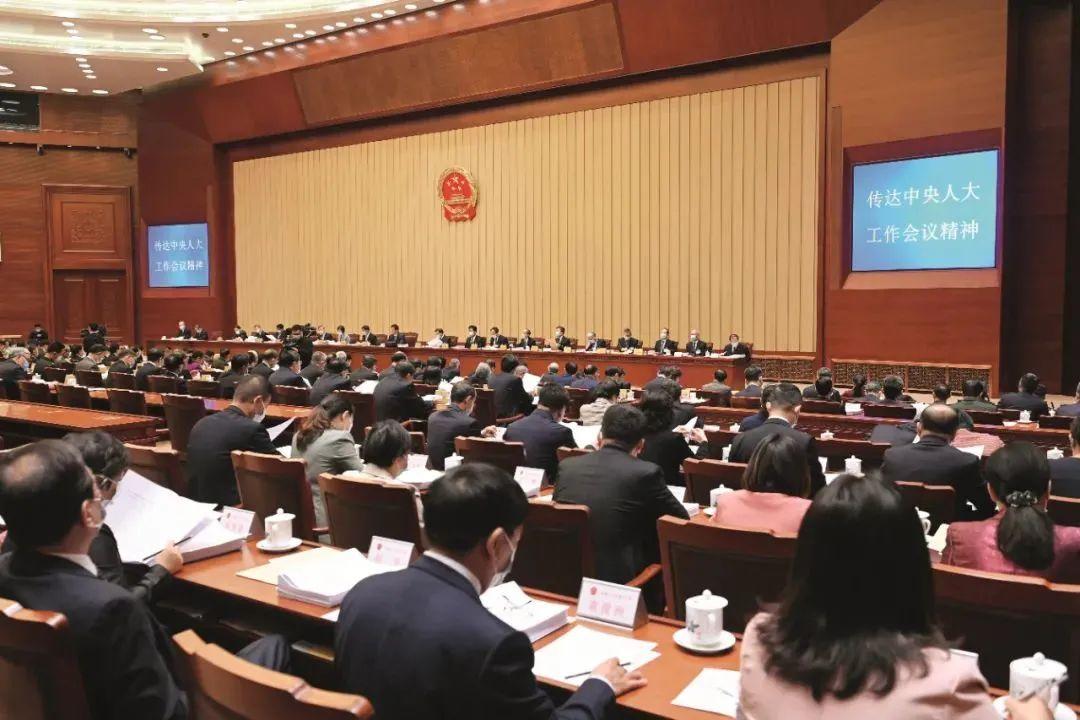2021年10月19日,十三届全国人大常委会第三十一次会议传达学习中央人大工作会议精神。栗战书委员长出席并讲话。摄影/马增科