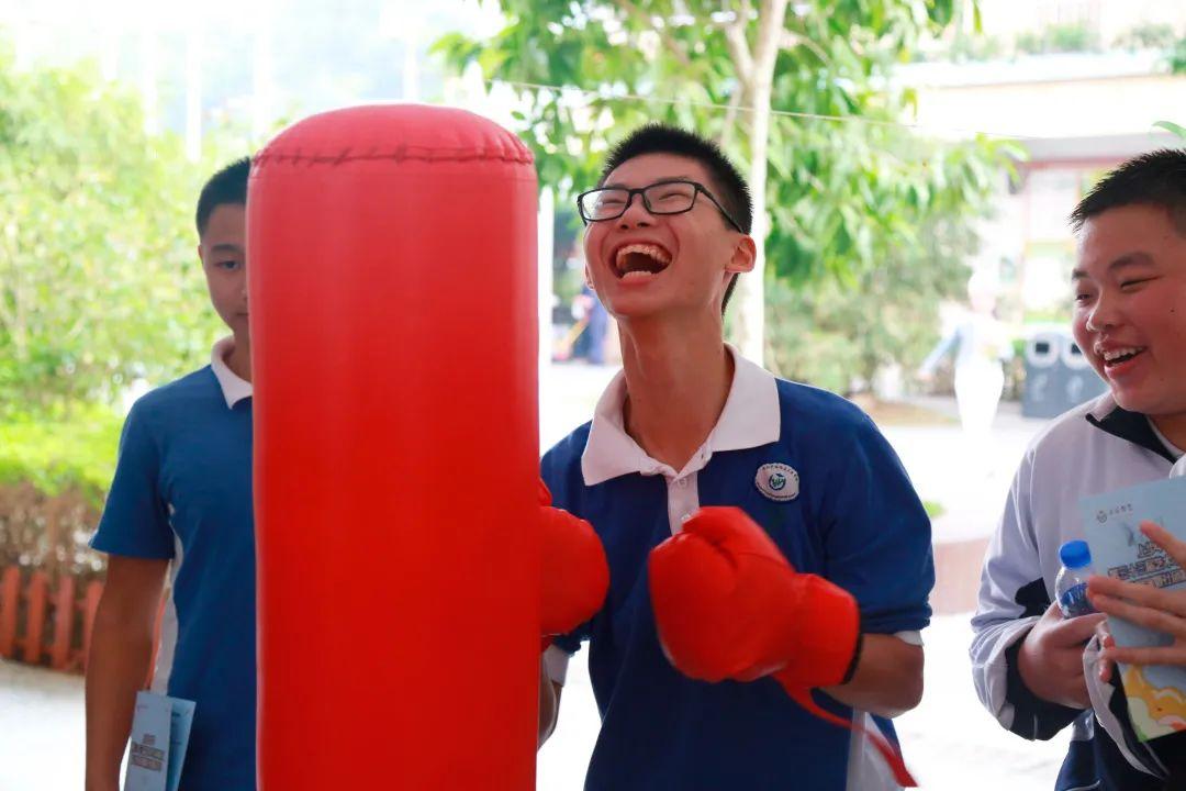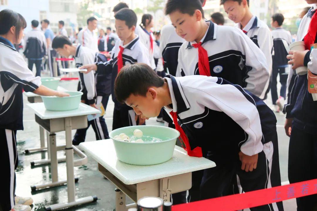 12月29日下午,阳光明媚,上步中学的校园是沸腾的。今年艺术节闭幕式变了一点新花样,除了文艺汇演还增加了社团嘉年华,在校园里布置了36个红彤彤的帐篷,社团的老师和学生设计了好玩有趣的游戏,有拼图的、套圈的、跳舞的、速答的、表演的……同学们排队参与节目,集章换取礼物。孩子们从一个摊位跑向另一个摊位,几乎所有的孩子都是跳着的,开心得不得了。