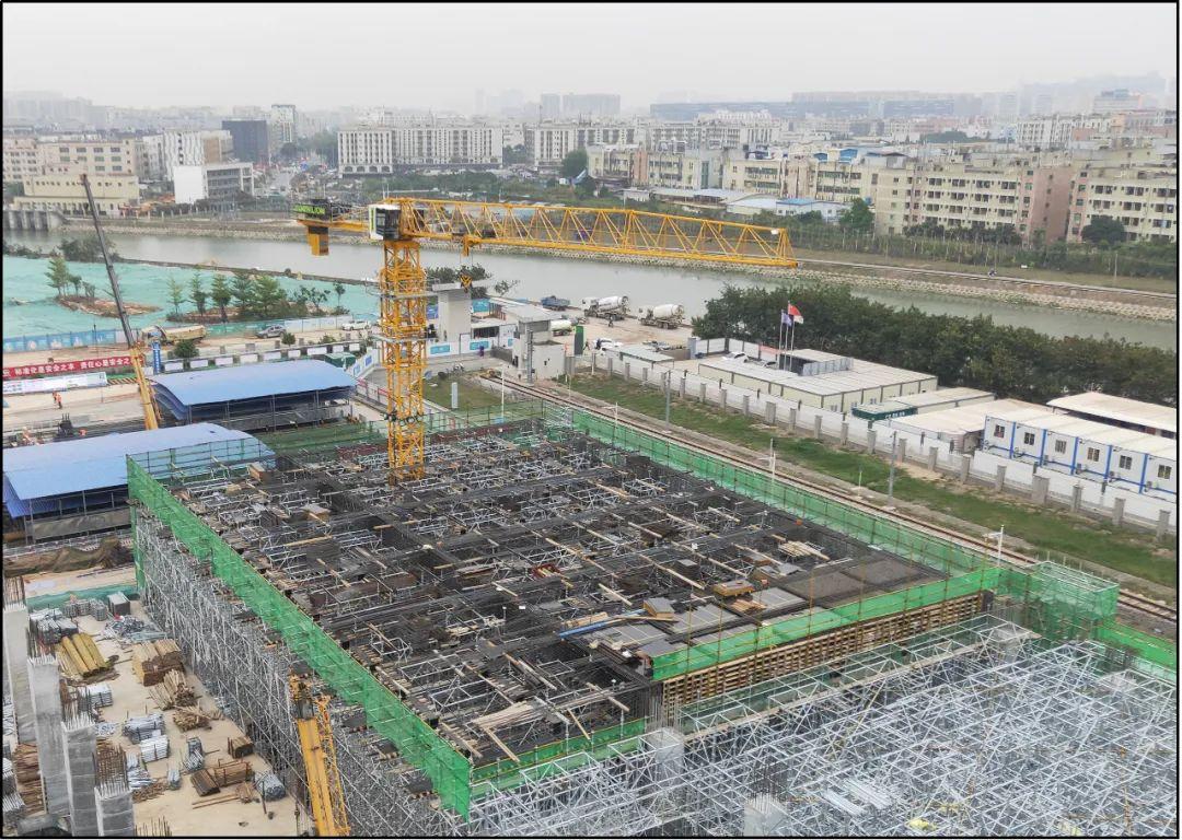 # 2021年4月8日,完成首段土建平台主体结构板浇筑;并于2021年12月24日完成土建平台施工。