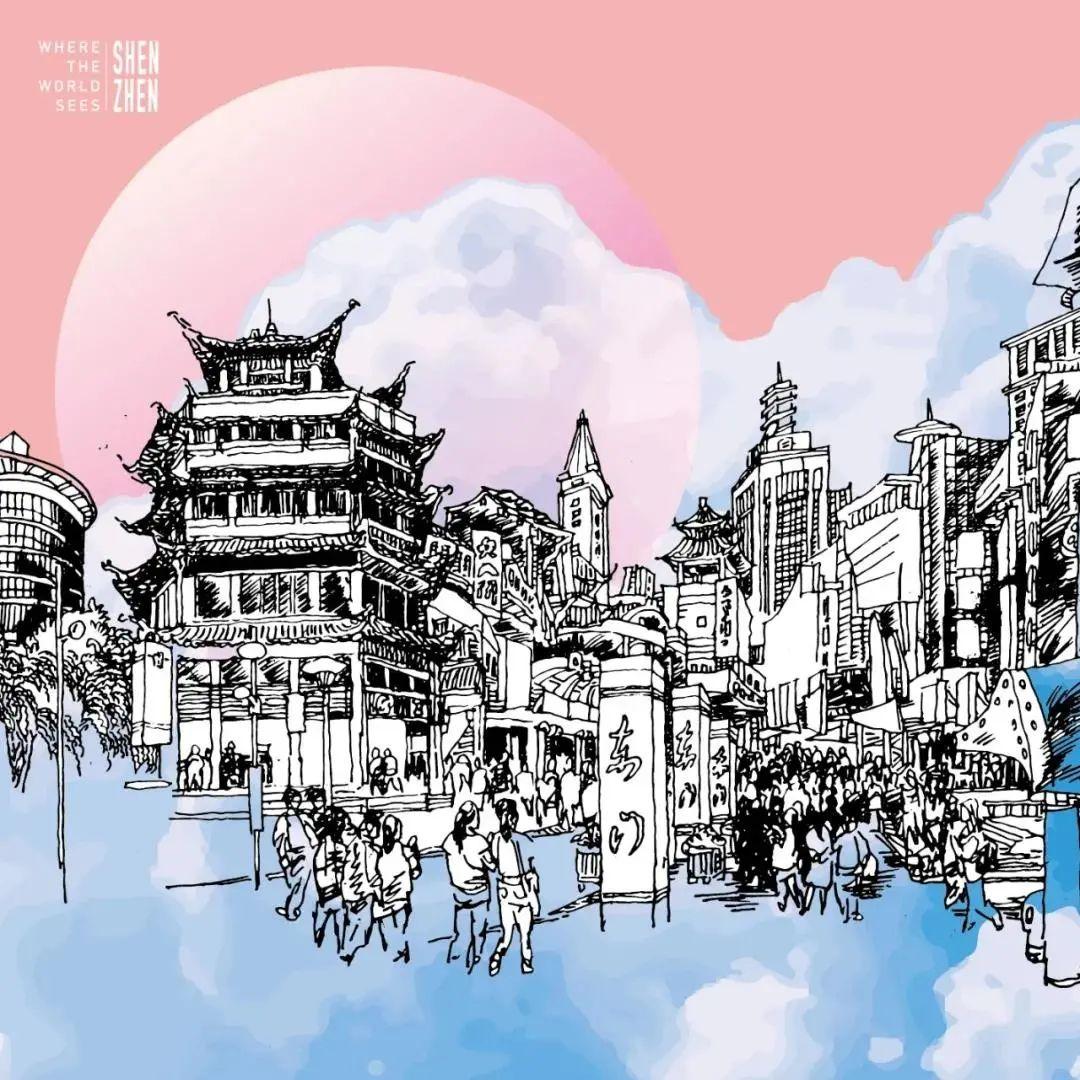 由插画作品构成的展区,是招商局广场上一道特别的风景。作品以写实风格为基调,用艺术线条的形式诠释城市的地标性建筑,窥探隐于城市脉络背后的故事。