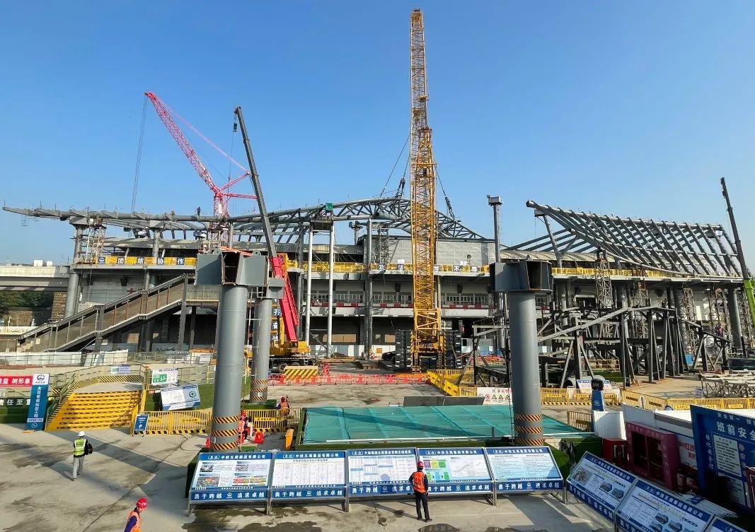 “湾区之舞”雨棚屋盖主桁梁的吊装