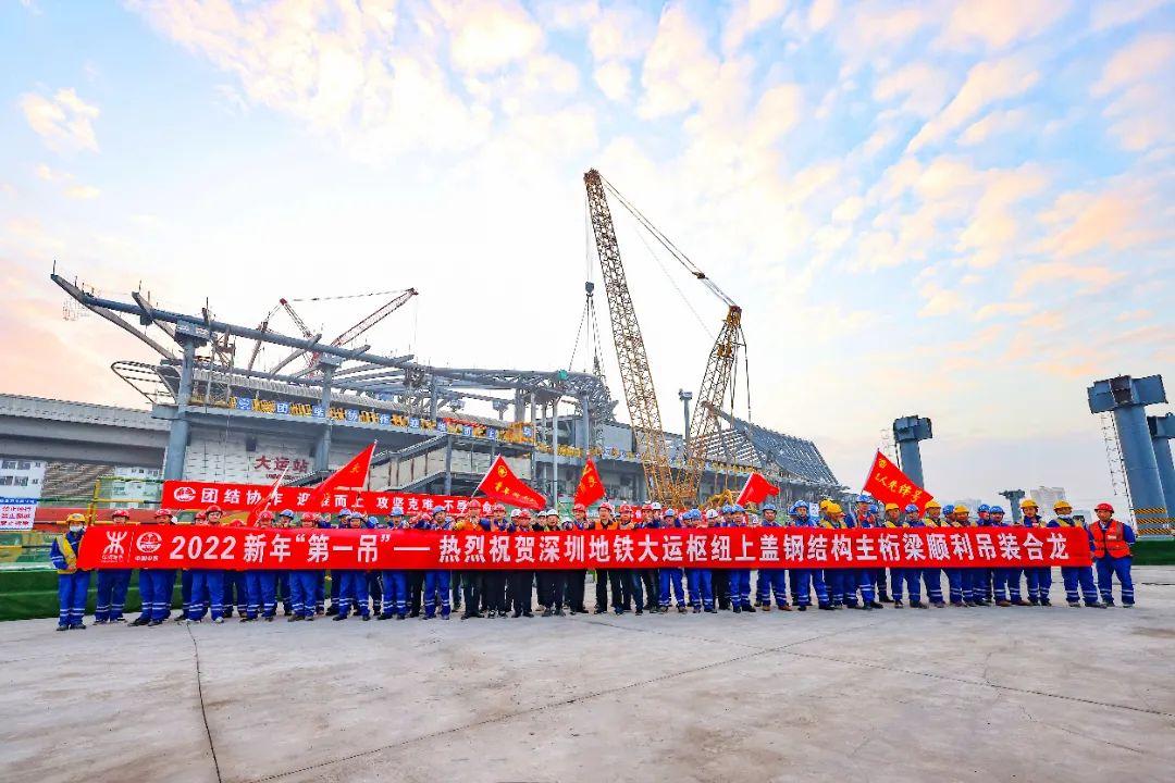 主体雨棚采用空间桁架钢结构,主桁架梁长51米、宽8.4米、高7.1米,重达164吨,施工时需采用单机500吨履带吊一次吊装完成,起吊高度达36米,正下方是交通繁忙的龙岗大道和3号线大运站,施工危险系数极高。