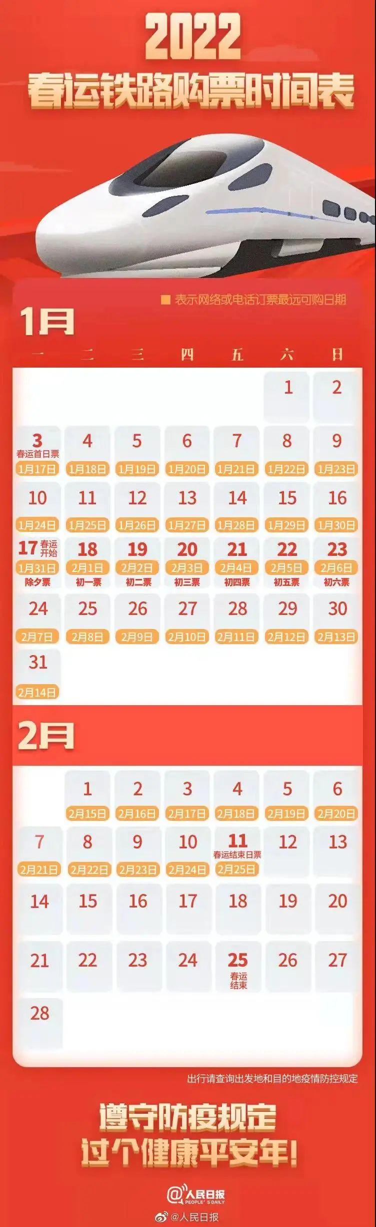 这份2022春运铁路购票时间表