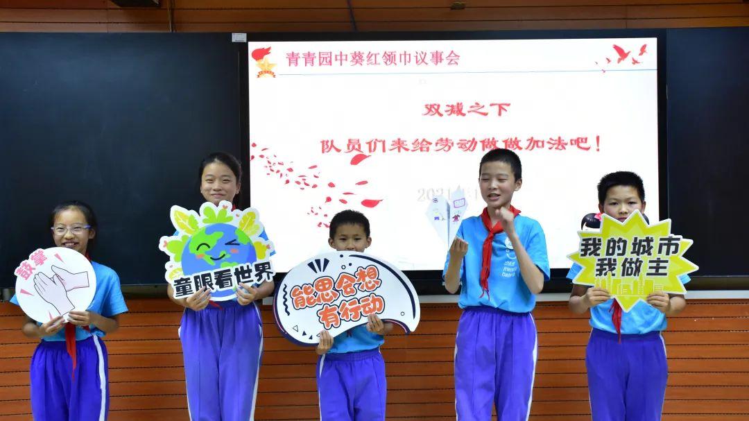 小议事员们用自己喜闻乐见的方式,通过绘画、思维导图等形式,从自我服务劳动、家务劳动、公益劳动等方面来给劳动做“+”法,为学校贡献了很多金点子,让旁听的老师们大开眼界。