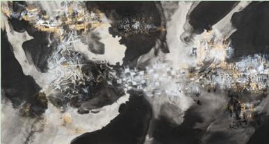 相较西方抽象艺术的产生以及中国抽象水墨的出现,其实质都是以现代工业和科技文化为时代背景的。甚至可以说,抽象水墨本身就是有意识地打破传统笔墨规则、表现现代文明的产物,带有先天的时代性。都市文化作为这个时代最为突出的显性文化,是所有具有时代性的艺术都无可回避的主题,更何况抽象水墨中,一些作品的语言脱胎于都市建筑纹样,一些作品的立意在于反思都市理性与自然人性的关系,一些作品的材料展现着世界资源的共享结构……