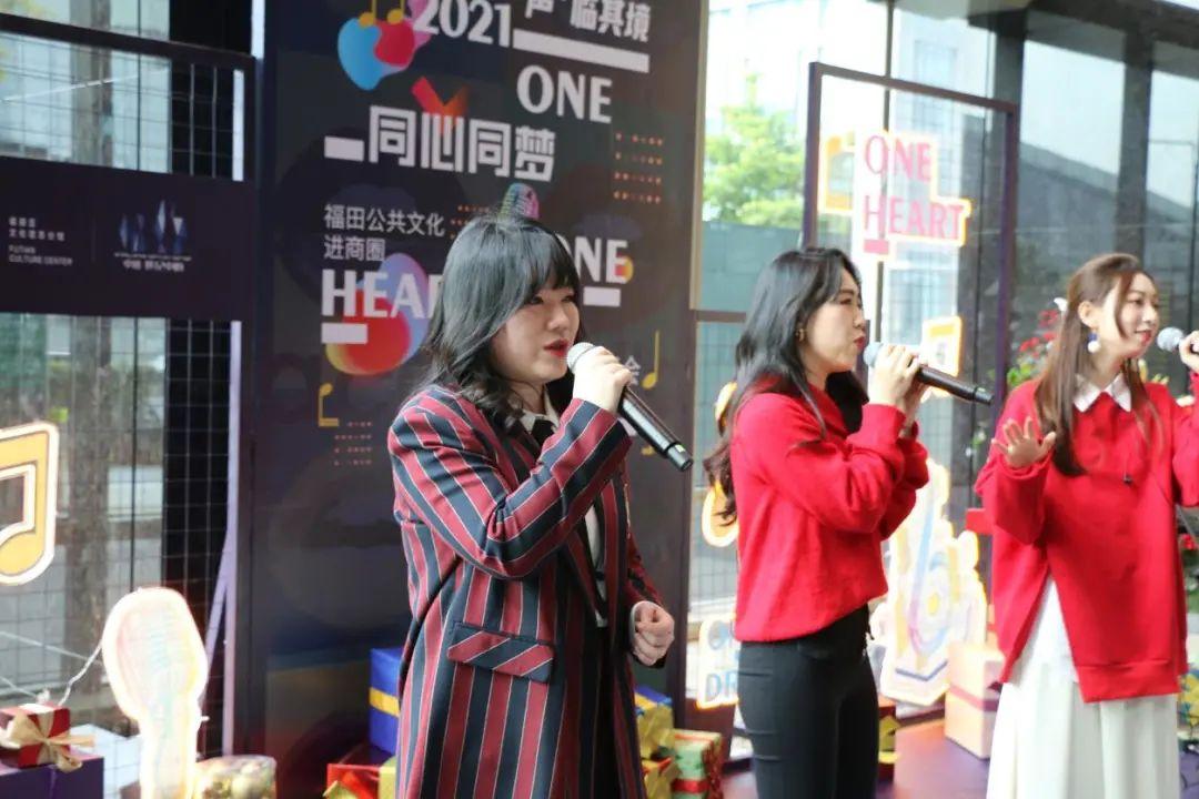 为加快构建福田都市公共文化服务体系,助力商圈经济繁荣,“同心同梦”福田公共文化进商圈于2021年8月起开展,活动延续文化馆总分馆“同心同梦”品牌,将精彩活动送进深业上城、Cocopark、卓悦中心、绿景虹湾等各主要商圈,类型包括音乐会、沙龙、舞蹈展演、皮影戏等。同时结合福田文化特色及资源打造“公共文化进商圈菜单”,并向各大商圈开展“点单服务”,采取“你点我送”的方式,为商圈提供精准化的文化服务。2021全年已开展“同心同梦”福田公共文化进商圈活动176场,惠及市民30余万人次。