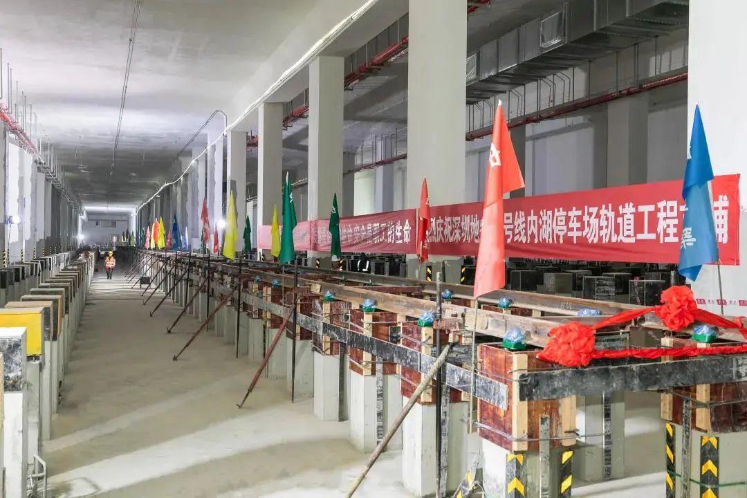 # 其中,11座车站(深圳湾口岸站、登良东站、后海站、科苑站、深大东站、深大站、留仙洞站、白芒站、应人石站、罗租站、宝石路站)已封顶,内湖停车场已封顶。