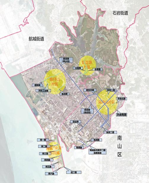 东部组团涉及石岩街道,计划重点开工建设洲石路东延工程、宝石路(松白路-同辉路)、田心大道如意路、羊台山路、科技路、罗租大道西延、建兴路、光明路、高科路(石观路-外环路)、宝石北路(外环路-北环路)、田心东路等11个项目。