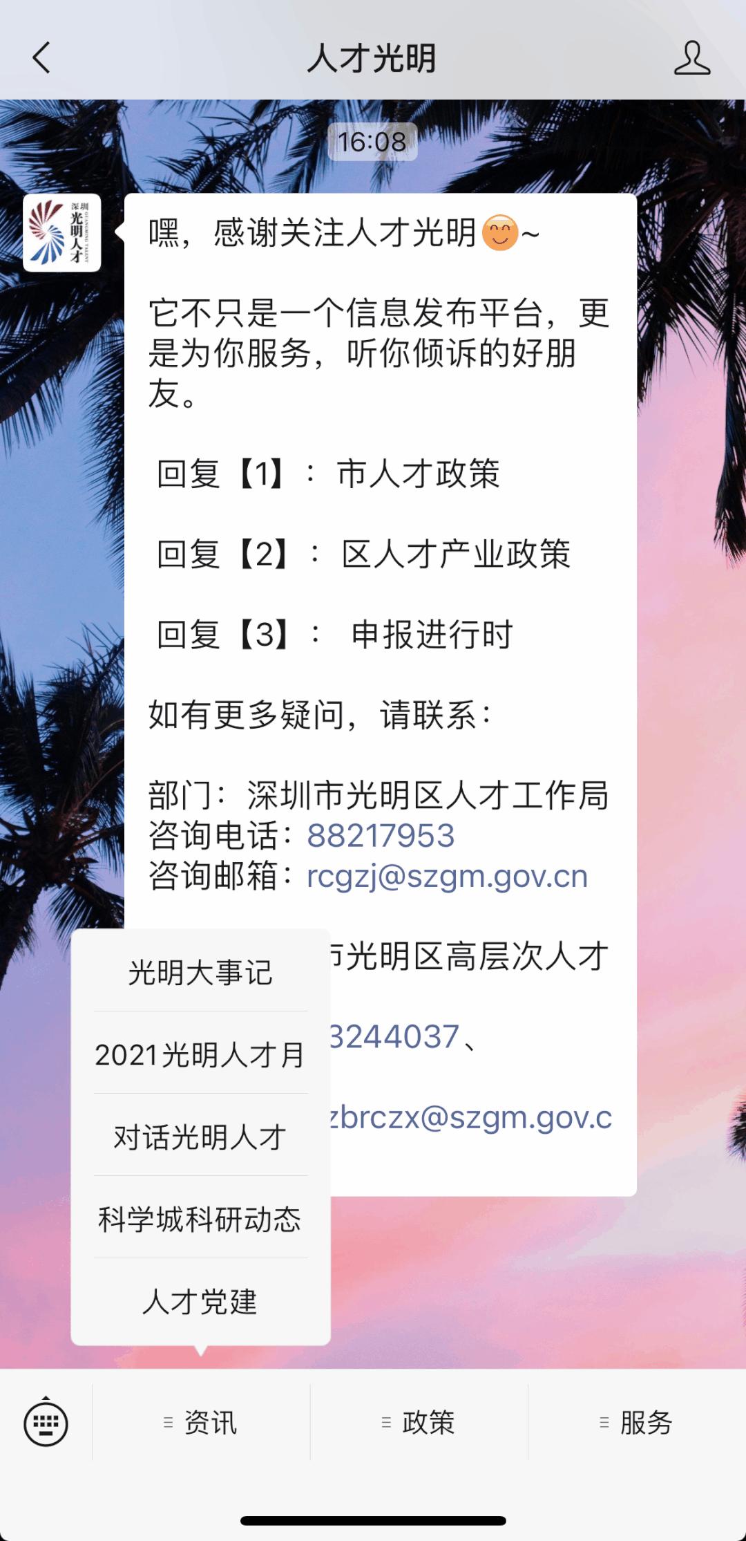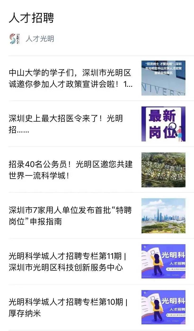 (1)点击上方链接关注“人才光明”公众号;