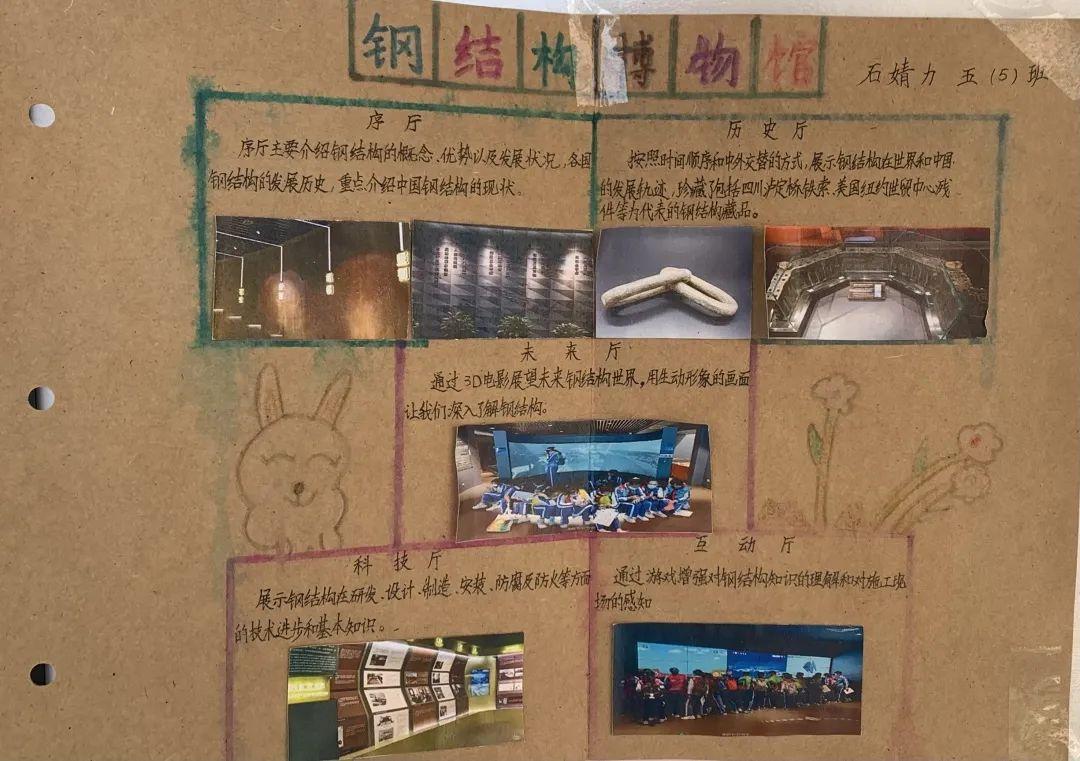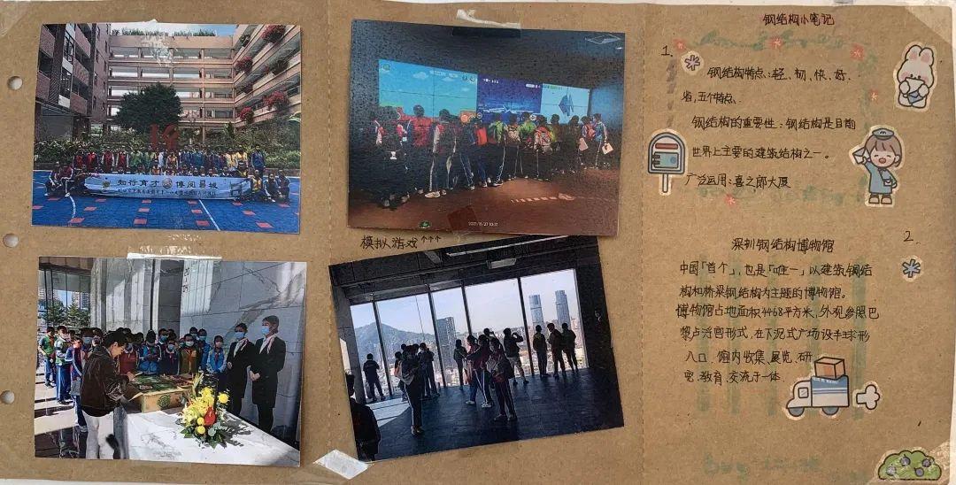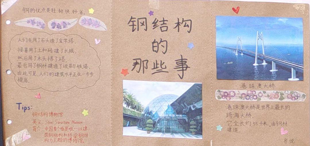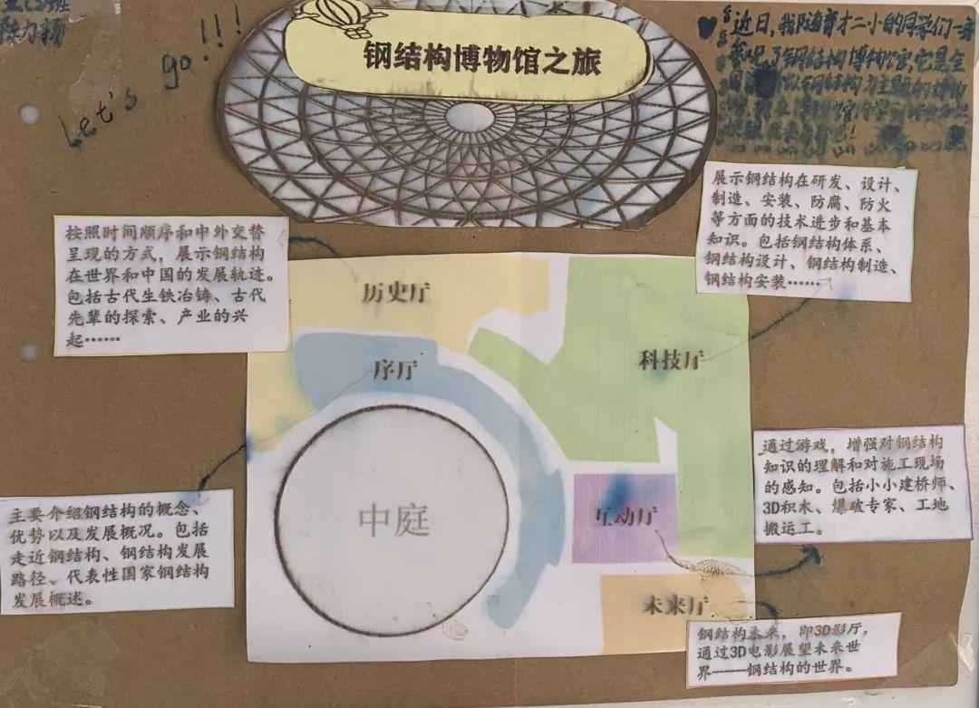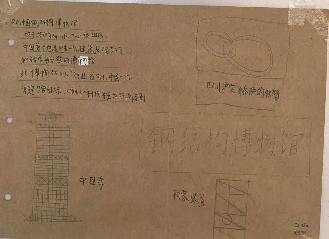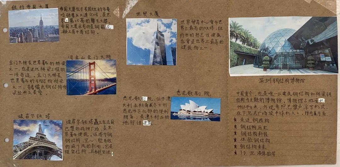 活动第一阶段,同学们根据校内指导教师特别设计的学习单,借助馆内实物、模型、图片、游戏,文字和多媒体等多种陈列方式,有的放矢地开展了模块式的小组合作学习,即看即学,边记录边消化,先后领略了世界钢结构的发展历程、中国钢结构的崛起之路及钢结构文明的特别气韵,深切地感受到了振奋的民族精神,以及建筑科学与人类文明的美好联结。