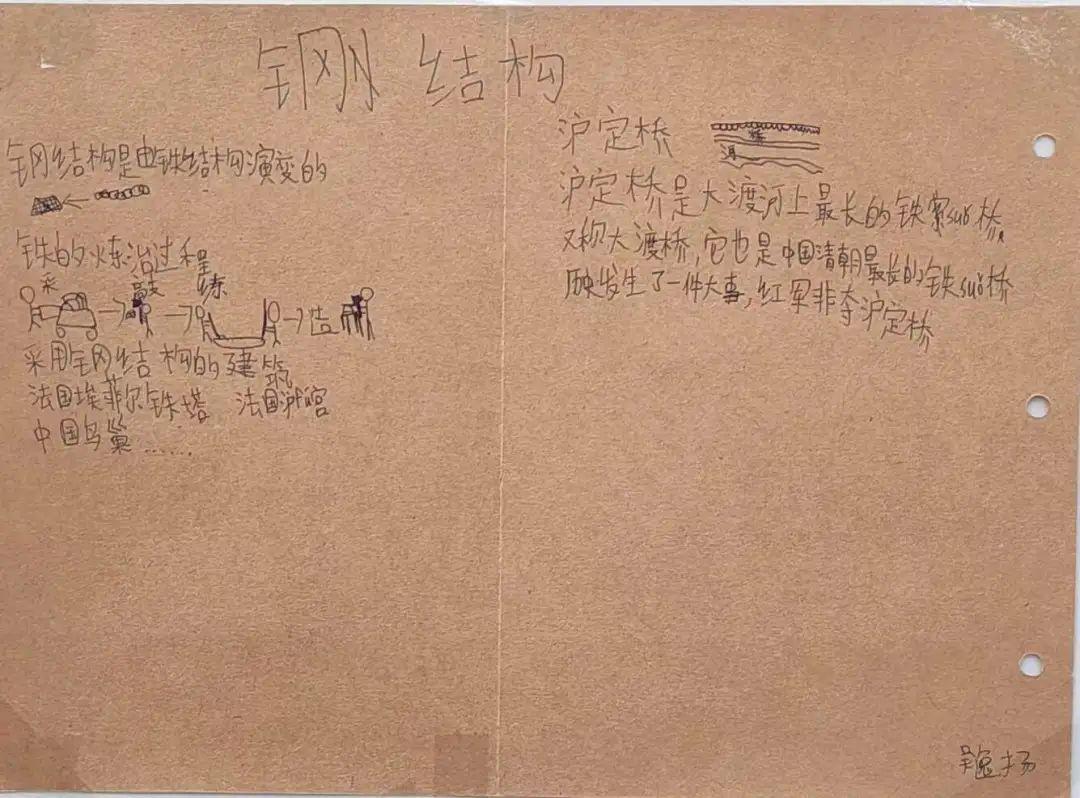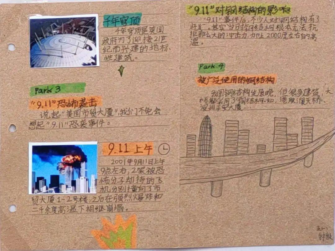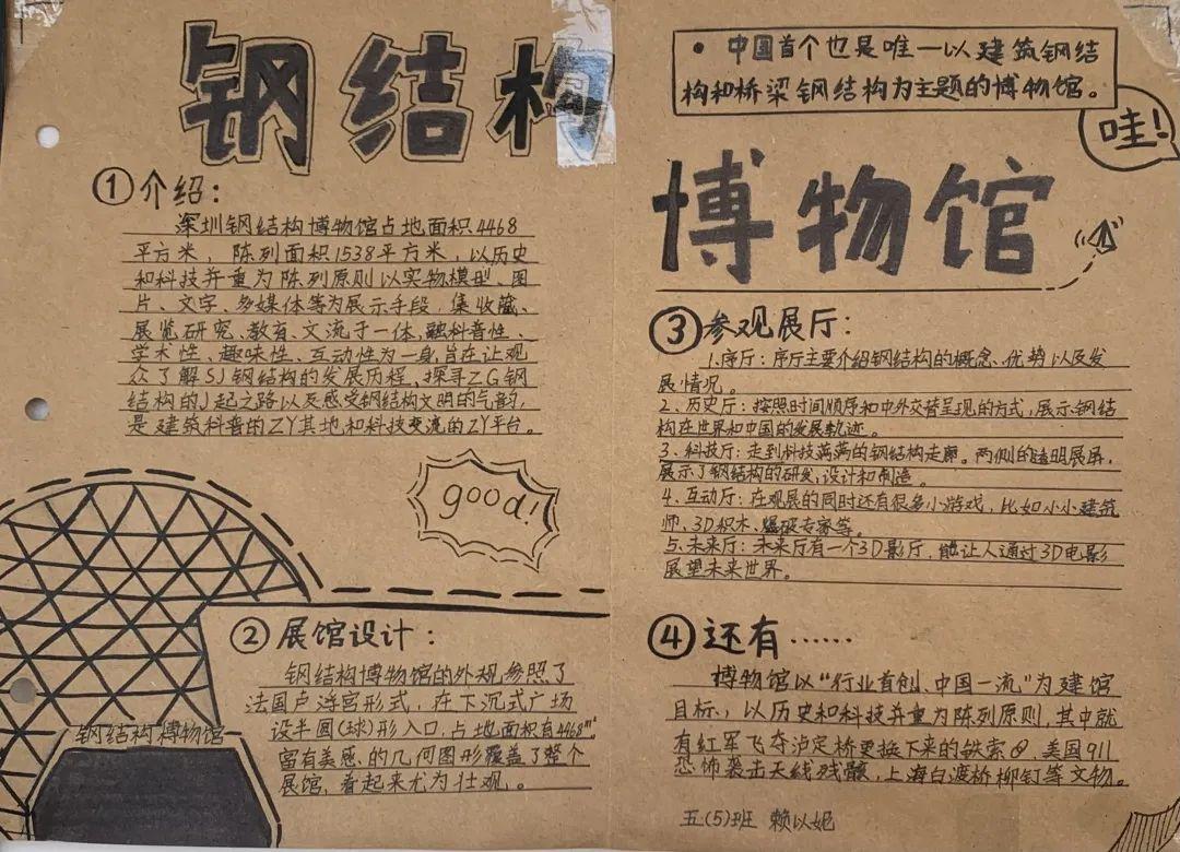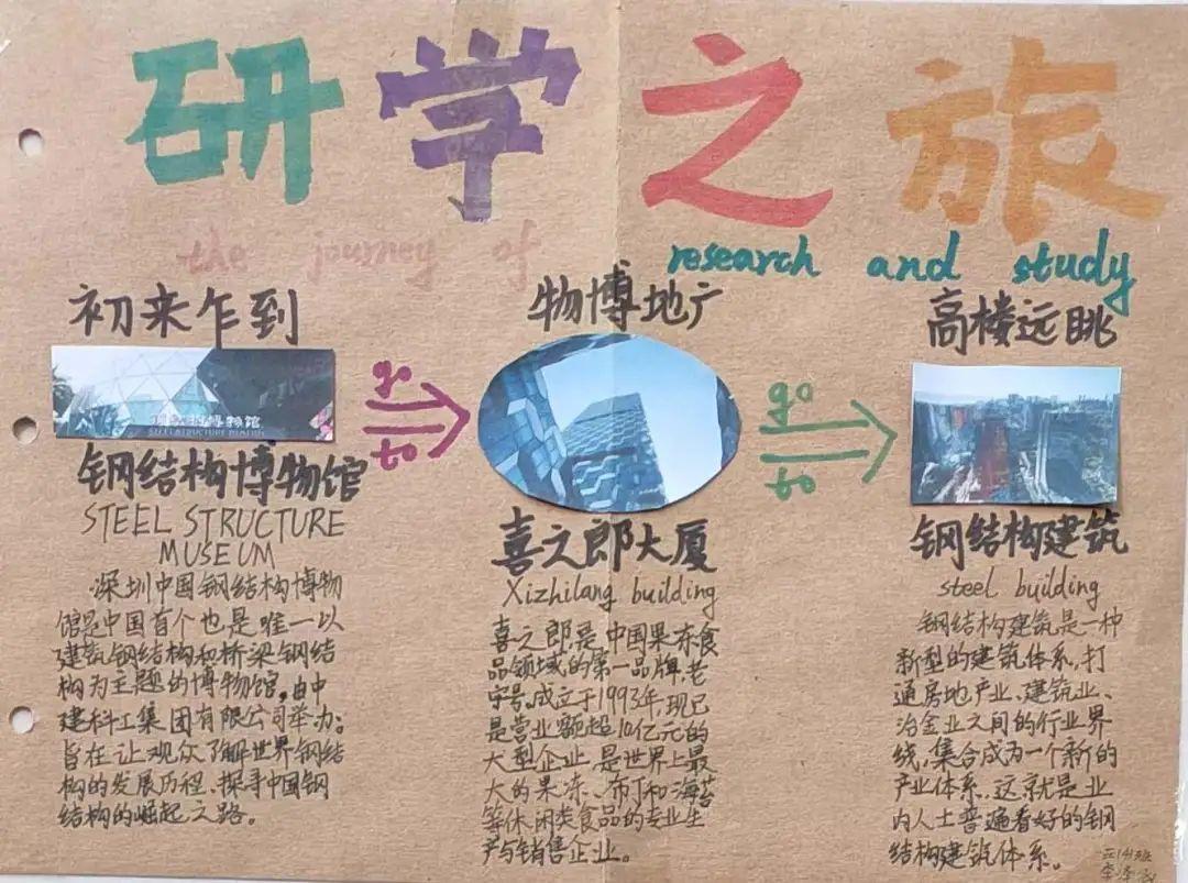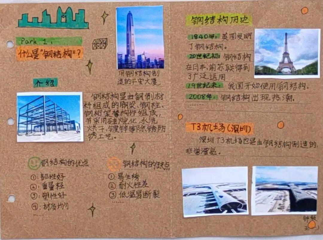 活动第一阶段,同学们根据校内指导教师特别设计的学习单,借助馆内实物、模型、图片、游戏,文字和多媒体等多种陈列方式,有的放矢地开展了模块式的小组合作学习,即看即学,边记录边消化,先后领略了世界钢结构的发展历程、中国钢结构的崛起之路及钢结构文明的特别气韵,深切地感受到了振奋的民族精神,以及建筑科学与人类文明的美好联结。