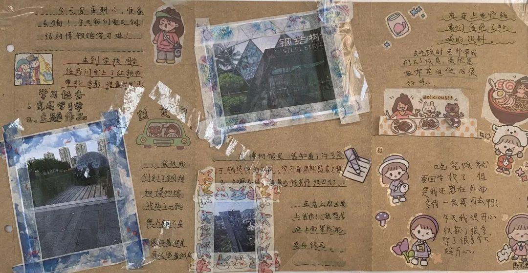 美育,应是一种不教而教的教育。活动第三阶段,8支小队各自为营,借助在馆内收集的资料完成主题研学任务,共同绘制班级展报并独立完成个人手账,真正实现了在实践中探究新知、在情境中思索真知、在合作中构建思维等教学手段的育人启智作用。