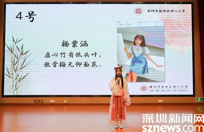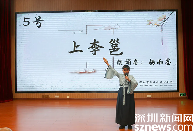 选手王奕萌从容不迫地低吟着李商隐的《锦瑟》,庄生梦蝶、杜鹃啼血,诗人真挚而幽约婉转的情思自她歌喉中缓缓流泻,情真意长,动人至深。选手王宇聪选择了李商隐的《无题•昨夜星辰昨夜风》作为自己的吟诵展示,在他清澈的吟唱中,华美瑰丽的场景、漂泊无定的感慨、忠贞不渝的感情走马观花般在观众的脑海里流泻着,跳跃变幻,情真意长。选手谭楚航说,他喜欢诗词,因为三尺书折射万里江山,五七字尽传千古深情,在吟唱《酬乐天扬州初逢席上见赠》时,他也仿佛带领观众一起邂逅了刘禹锡俊爽明快、万木生春的心灵。选手杨紫涵用一首气势饱满、意态激昂的《闻官军收河南河北》攫取了全场观众的目光,抑扬顿挫、神行语外的诗圣仿佛瞬息穿越春秋,随着她的吟诵向观众徐徐而来。选手杨雨墨吟诵的《上李邕》慷慨激昂,诗仙的热烈奔放、不畏流俗在他的高歌中彰显无遗,透过他明亮自信的眼眸,在场观众仿佛真的酒入豪肠,重见了半个盛唐。选手张子墨带来的是诗魔白居易的《钱塘湖春行》,在他的低吟中,观众们似乎正与花光缤纷、垂柳婆娑的暮春景象相逢,耳边响彻的尽是间关鸟语、恰恰莺啼。