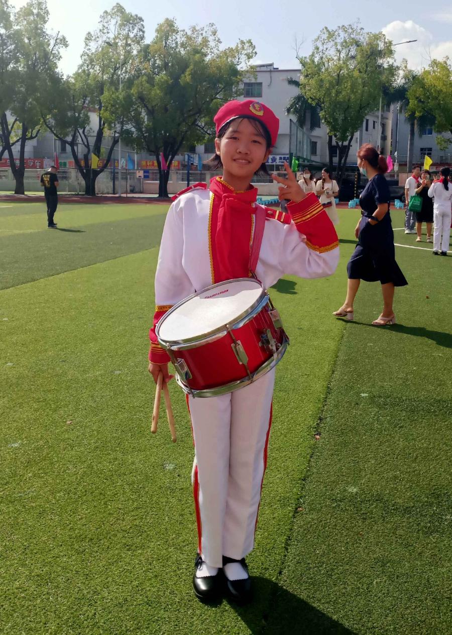 葵涌中心小学少先队鼓号队不负众望,在赛场上精神抖擞、斗志昂扬,身着靓丽的服装,迈着坚定的步伐,随着鼓与号节奏的音符不断地变换队列。在寓意深刻、新颖独特的队列变化中,描绘着中国共产党的百年峥嵘岁月,用跳动的音符和挺拔的身姿展示着新时代少先队员红心向党、自立自强、蓬勃向上、锐意进取的精神风貌。
