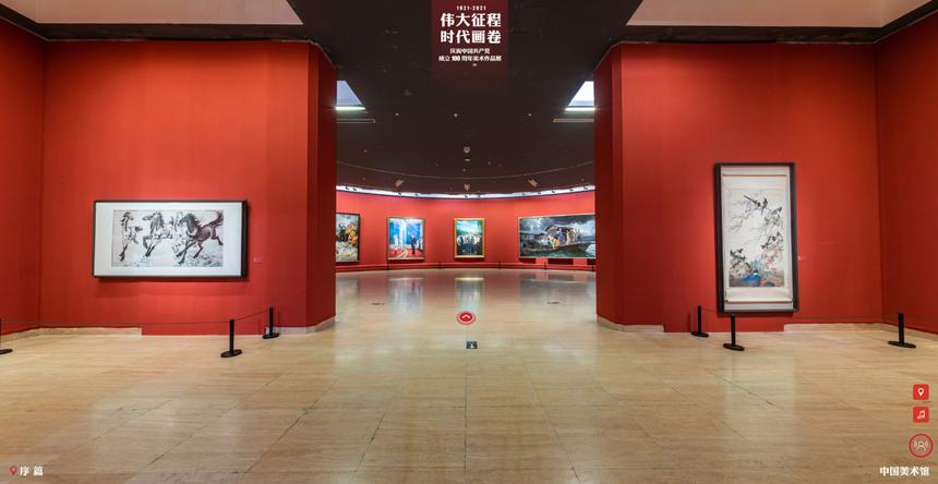 中国美术馆推出“伟大征程 时代画卷——庆祝中国共产党成立100周年美术作品展”线上全景展厅,通过虚拟现实、智能导览等技术,让参观者多角度观赏作品,感受真实展厅的环境。