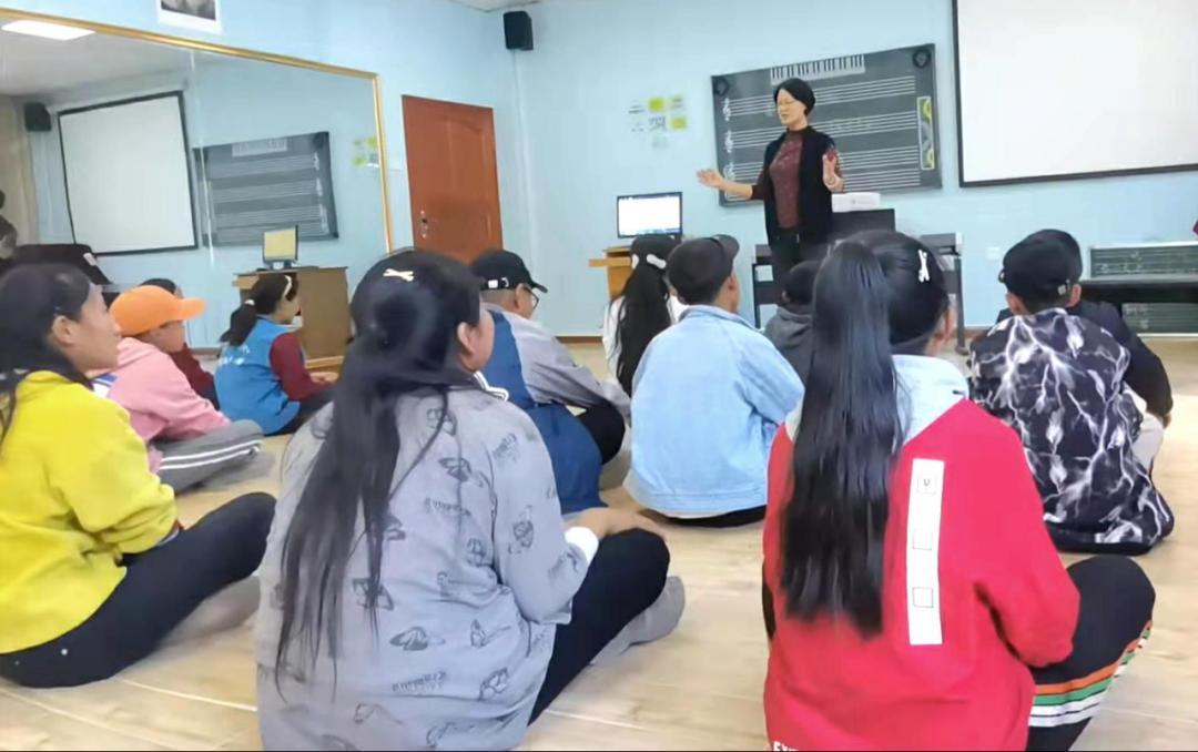 | 08 陈文红老师正在耐心地传授学生合唱技巧,一遍遍的示范,争取每个学生都能掌握。 |