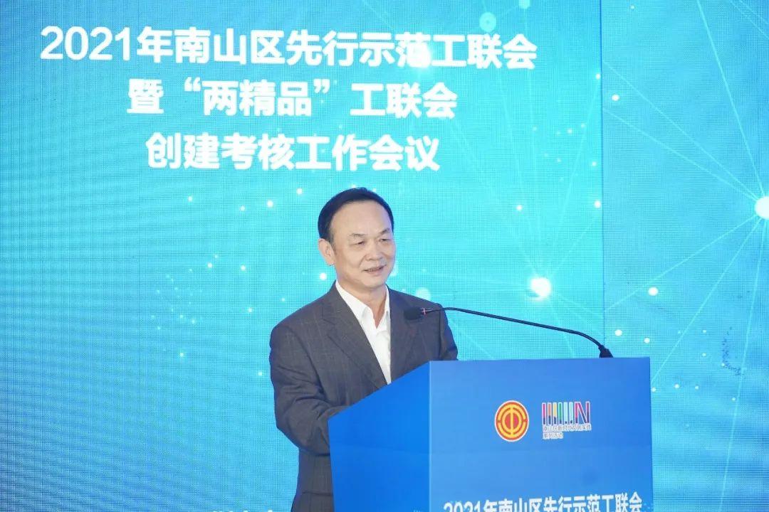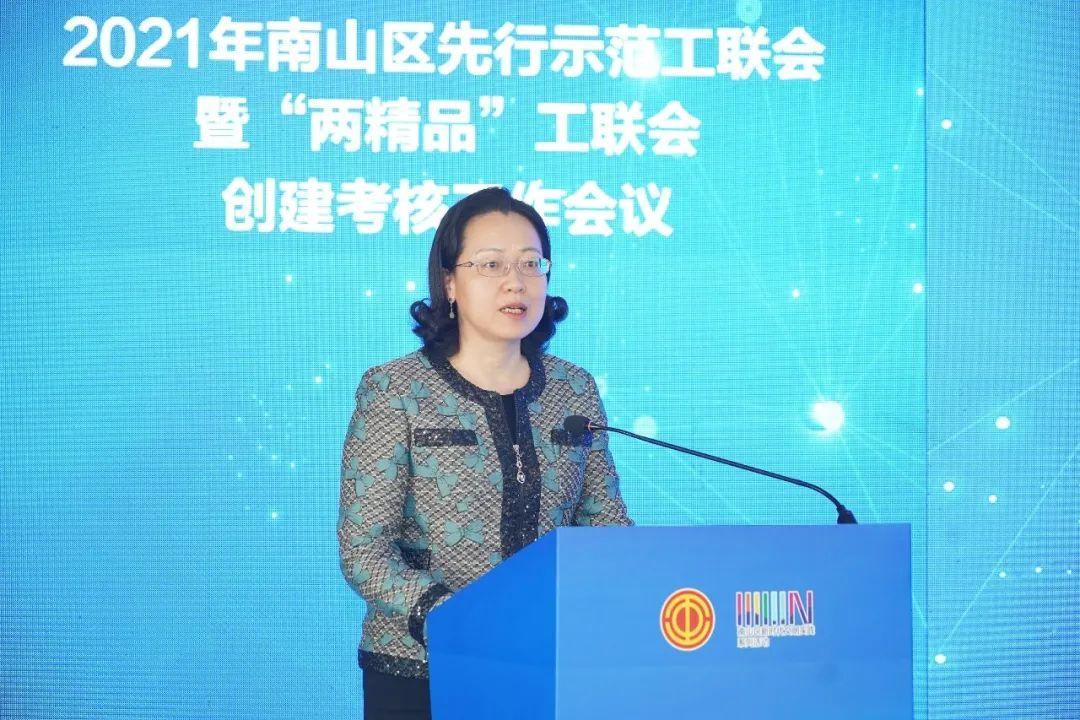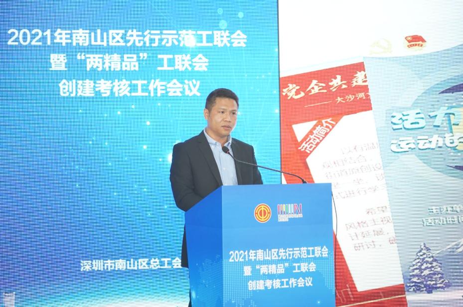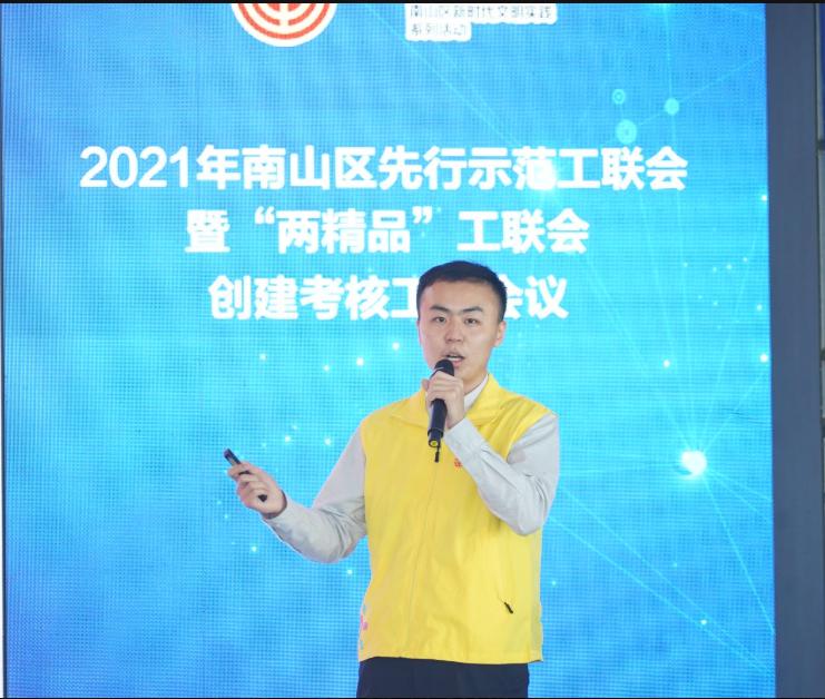 近年来,南山区总工会对标先行示范标准,不断提高政治站位和责任担当,积极探索出了符合南山特色的“12345工作法”,有效推进先行示范工联会创建工作。2021年,南山区总工会进一步创新工联会建设工作,将园区工联会纳入创建中,以“两精品”工联会为载体,持续开展先行示范工联会创建工作,打造了一批基层工联会新标杆,蹚出了先行示范工联会改革新路,为深圳“先行示范”贡献了南山工会力量。