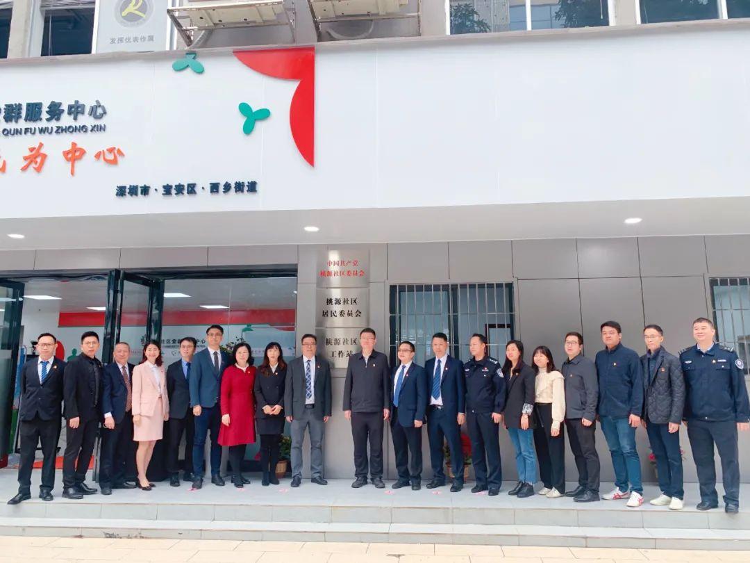 宝安区委副书记、区委政法委书记马里,区职业训练中心主任郭东江,西乡街道李育基、杜俊平、黄东明、龚文波、姚文群等有关领导,桃源社区党委第一书记张力、社区党委书记金伟东、社区两委班子、支部第一书记、社区工作人员等人参加揭牌仪式并合影留念。