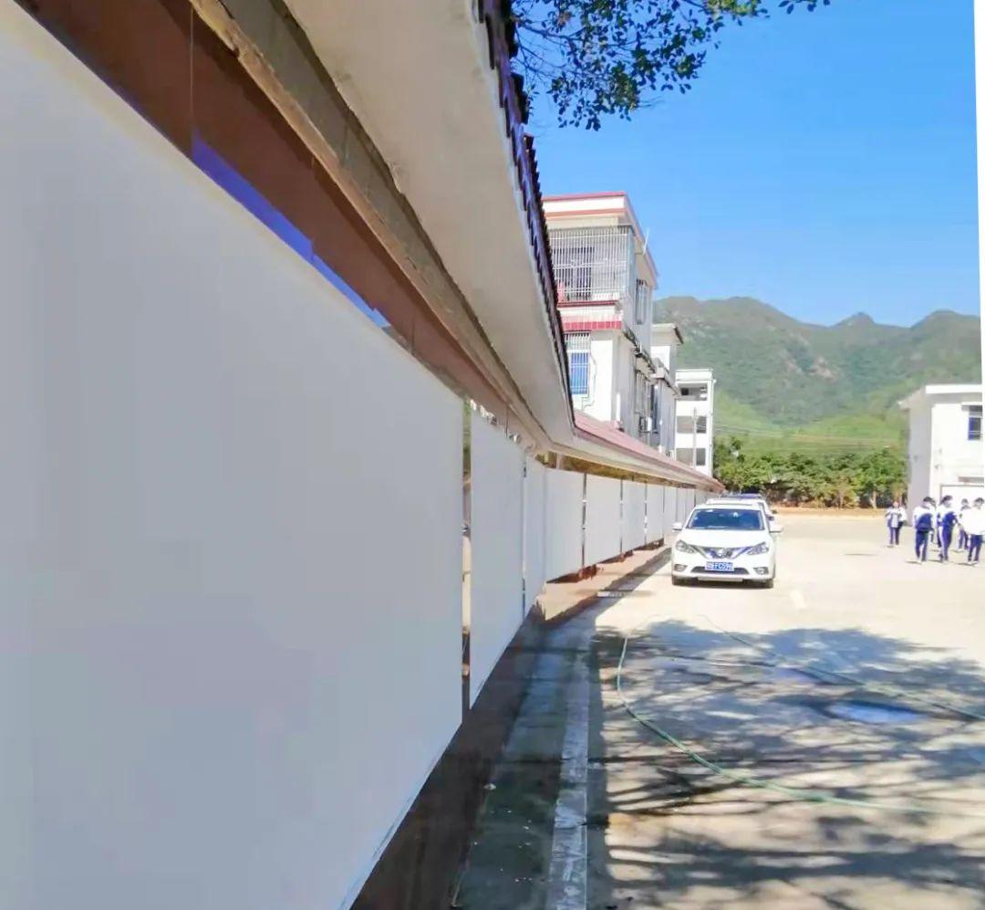 小漠镇中心小学后方的围墙因台风灾害,长时间没有修缮,仅用木柱支撑,随时有倒塌的风险。修缮后,围墙焕然一新,师生在围墙周边活动时也不再担心有安全隐患。