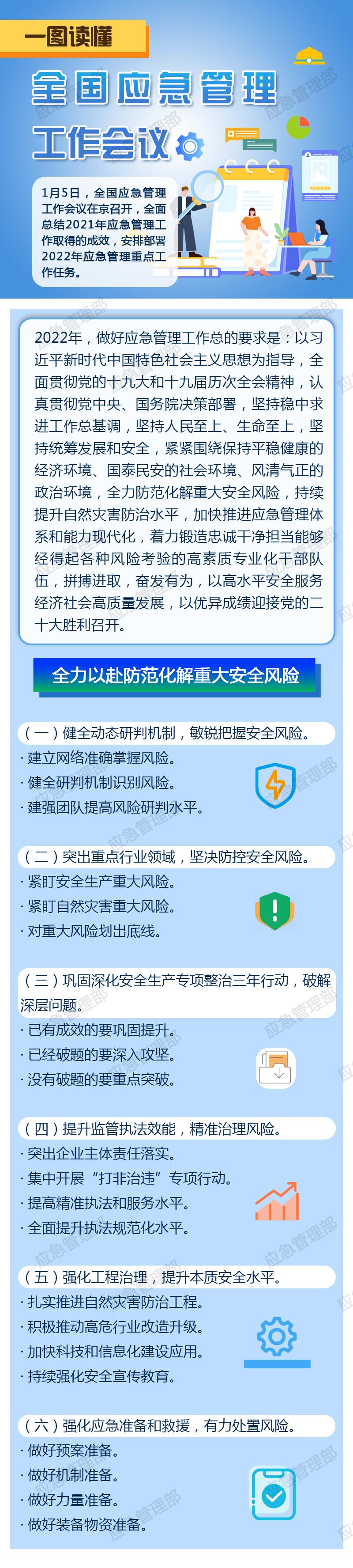 1月5日全国应急管理工作会议在京召开2021年应急管理工作取得了哪些成效?2022年安排部署了哪些重点工作任务?一起看图了解↓↓↓end扫描二维码关注我们微信号:南山应急指挥中心来源 中华人民共和国应急管理部编辑 南山应急君