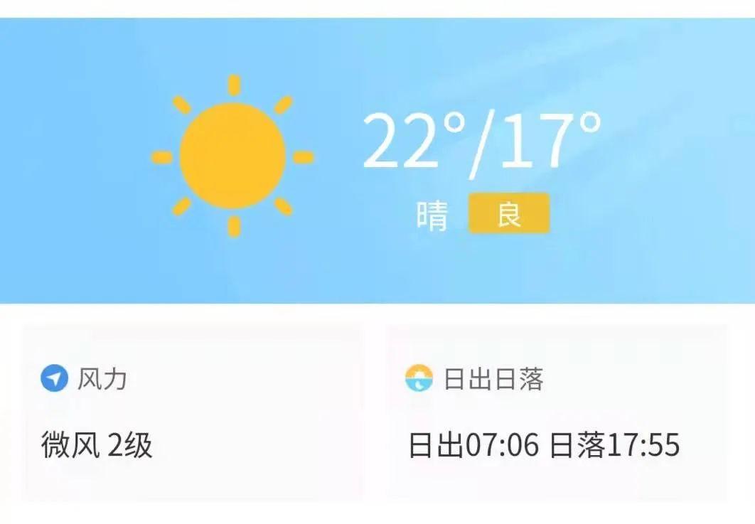 8日晴天间多云;气温17-22℃;东北风2-3级;相对湿度55%-90%。9日大致天晴,昼夜温差大,10日云量增多。