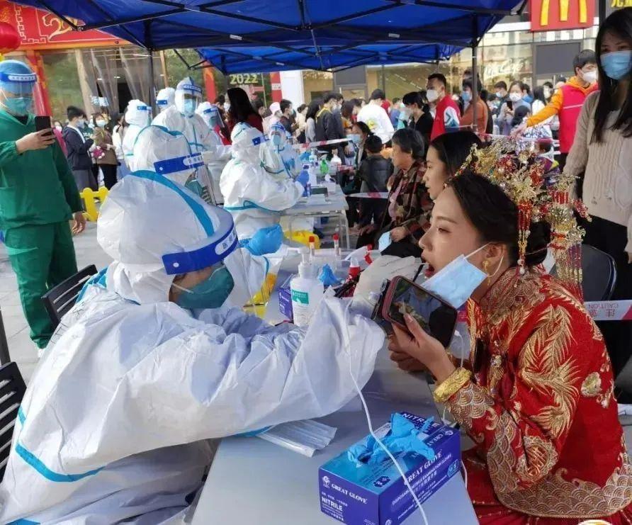 今天,一段“深圳新娘测核酸”的视频在网上流传。