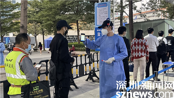 读特客户端·深圳新闻网2022年1月9日讯(记者 郭含笑)“从早上9点到晚上12点半一直在笋岗街道初心公园核酸检测点协助工作,回到家之后在沙发上就睡着了......”笋岗街道北站社区志愿服务队队长孙世福说道。2022年1月7日,深圳报告2例新冠病毒阳性感染者,其中一名感染者在罗湖工作。面对突如其来的疫情,罗湖各街道、各社区迅速开展新一轮核酸检测。1月8日下午,深圳新闻网记者实地走访翠竹、笋岗街道等多个核酸检测点,深入了解核酸检测现场的情况。