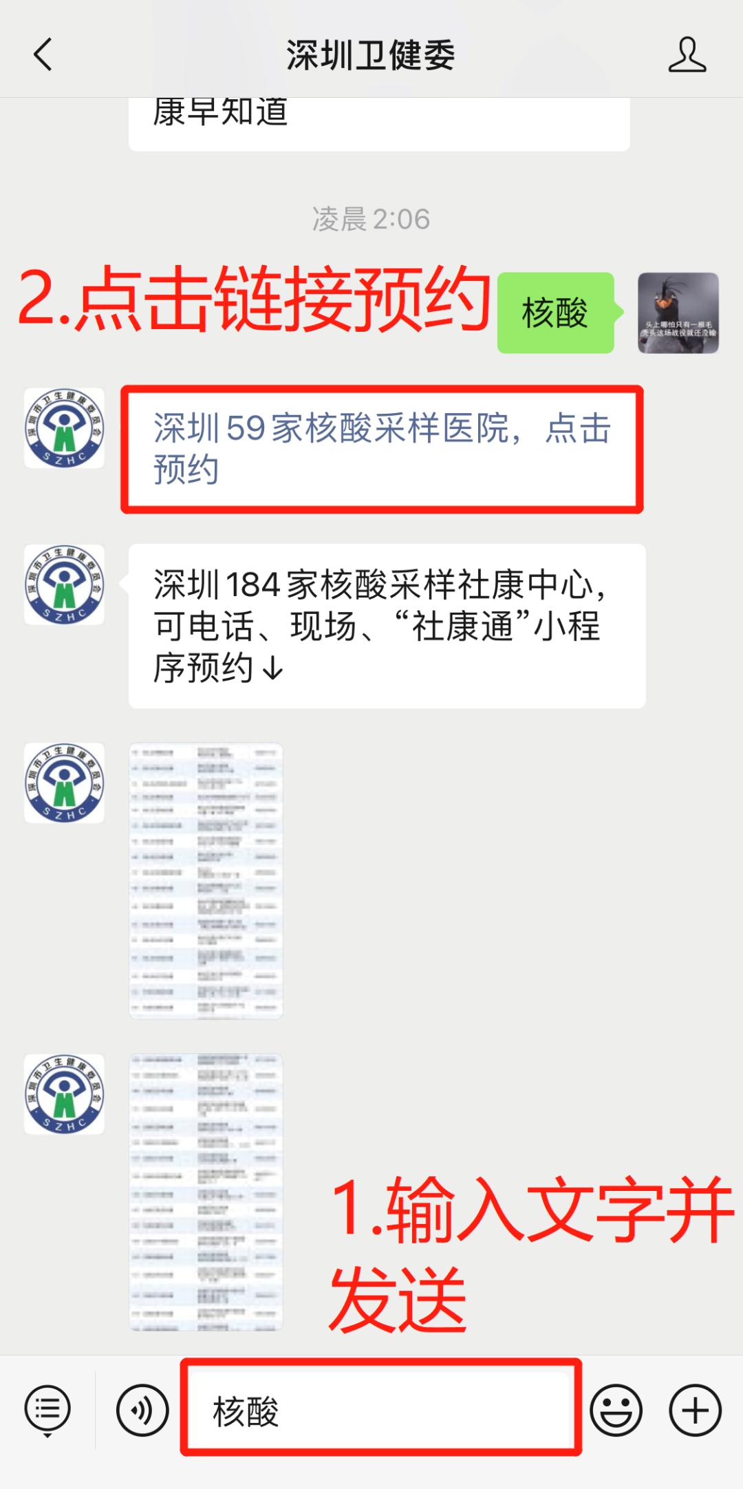 在【深圳卫健委】公众号中,回复关键字【核酸】获取电话,或现场预约