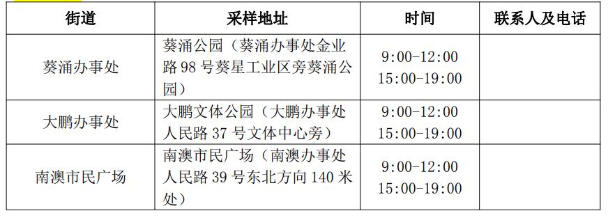 大鹏新区核酸检测采样点