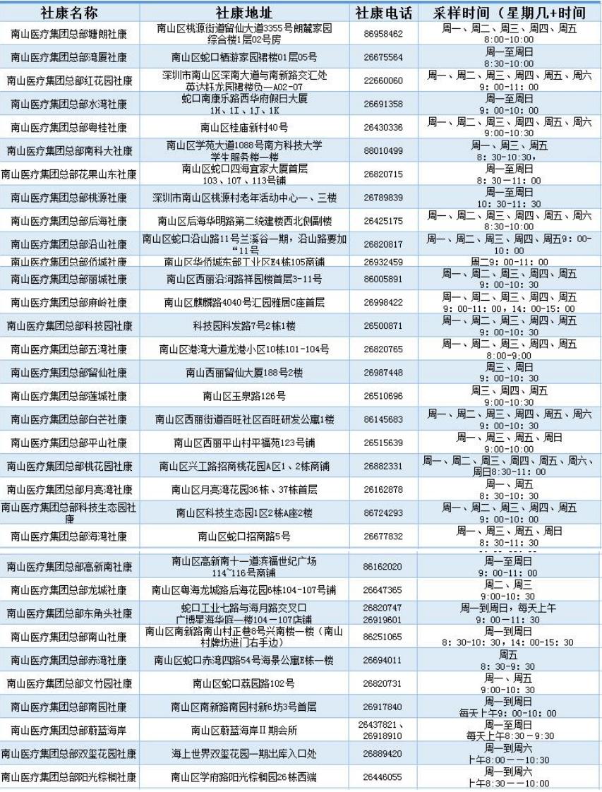 南山区核酸检测采样点