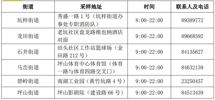 坪山区核酸检测采样点