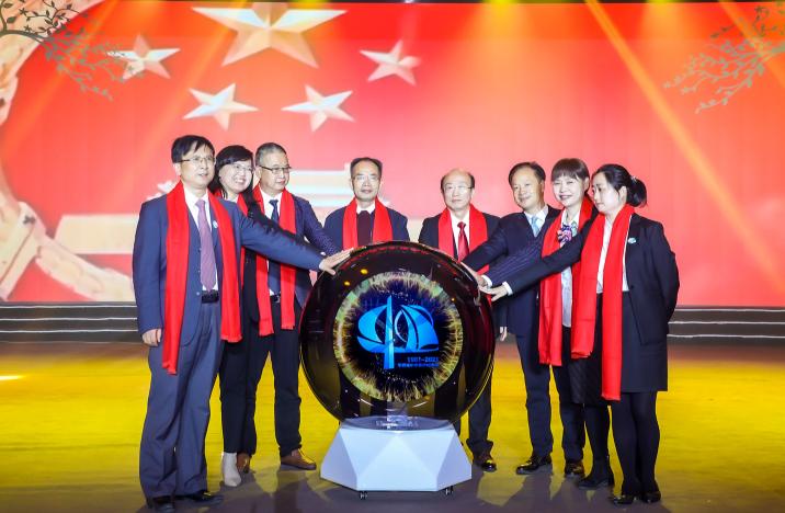 所有的校级领导以及两位老校长上台,一同启动庆典活动。