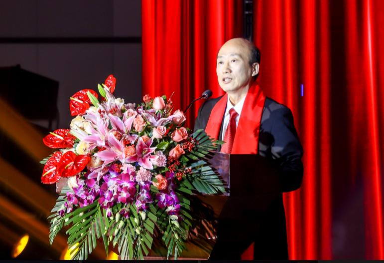 校长蔡树男上台讲话,表达了对学校的美好祝愿,道出了学校40年的风雨历程和远大的前景。