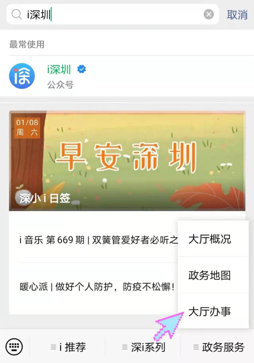 方式三:微信搜索“i深圳”公众号,点击“办事大厅”,在行政服务大厅中选择“前海自贸区”。