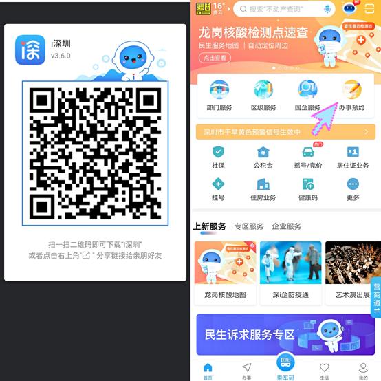 方式一:打开i深圳 APP,点击“办事预约” 选择“前海合作区”。