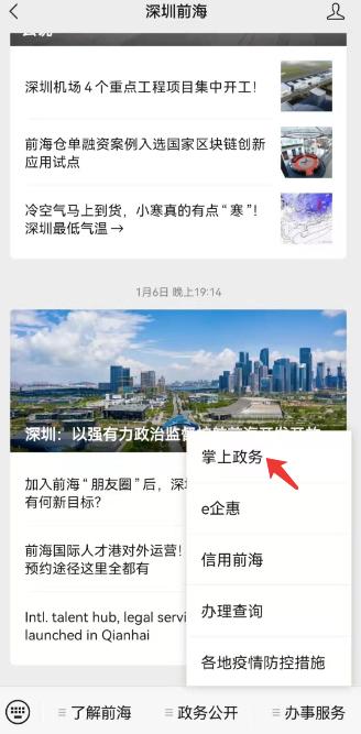 方式二:微信搜索“深圳前海”公众号,点击“掌上政务”。