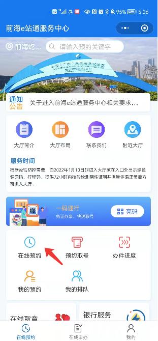 方式四:微信搜索“前海e站通服务中心”小程序,点击“在线预约”。