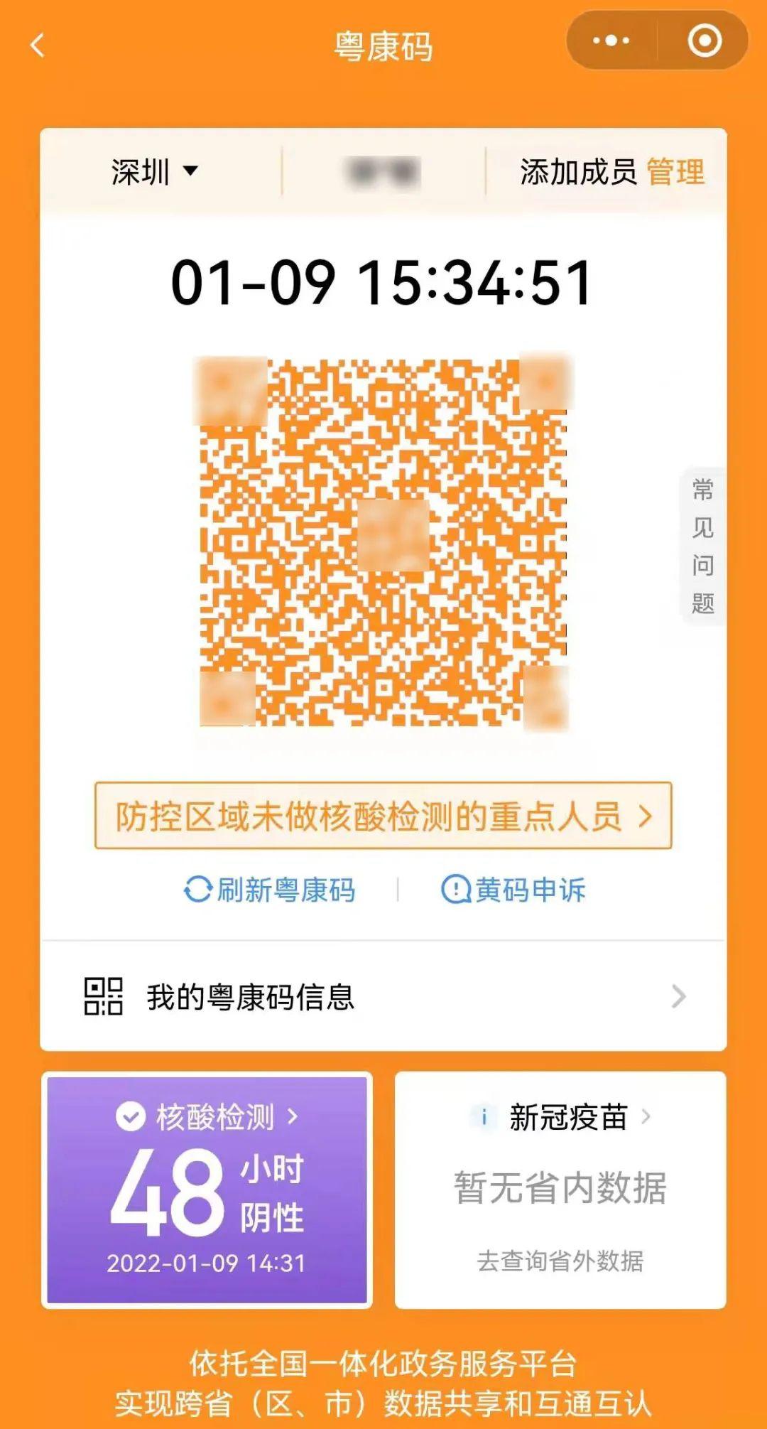 黄码人员在3天内接受2次(间隔24小时)新冠病毒核酸检测,结果均为阴性后,黄码可转为绿码(粤康码后台自动检索)。