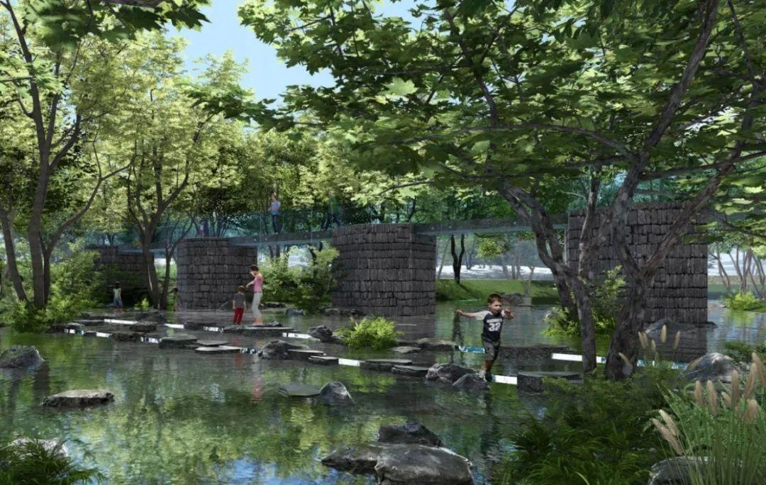 设计拟解决自然生态弹性赋值问题,形成一个完整的城市环境,围绕着本地生物打造的绿色廊道。慢行服务系统设计关注不同潮汐游客数量,新增水上活动与游线营造的整体体验系统,生态性碧道忙时为游客服务,闲时为本地人群服务,一直为自然服务。因地制宜构建大型下凹绿地,生态海绵空间,水下森林,红树林群落,特色森林课堂等。