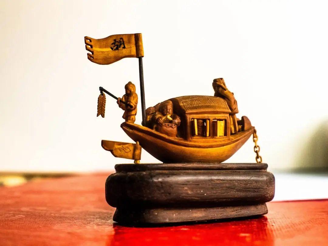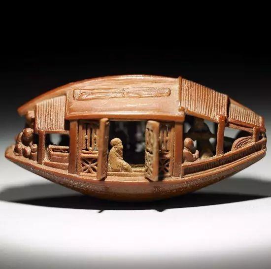 到了清代,橄榄核雕更是历年的贡品,历史上最为出名的是清代咸丰年间新塘老艺人湛谷生的《苏东坡夜游赤壁》花船,被称为雕刻之王。橄榄核雕工艺秉承了岭南文化的风格特征,而现代橄榄核雕作品继承传统,小巧玲珑,精雅别致,有很高的艺术价值