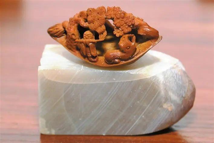 核雕工艺最早见于南北朝时期,有千余年历史,繁荣发展于明清。核雕工艺中,最常见的材料是橄榄核和桃核。其中,橄榄核雕精巧玲珑、极具特色,在明代曾经风靡朝野,成为了文人雅士显示身份地位的象征