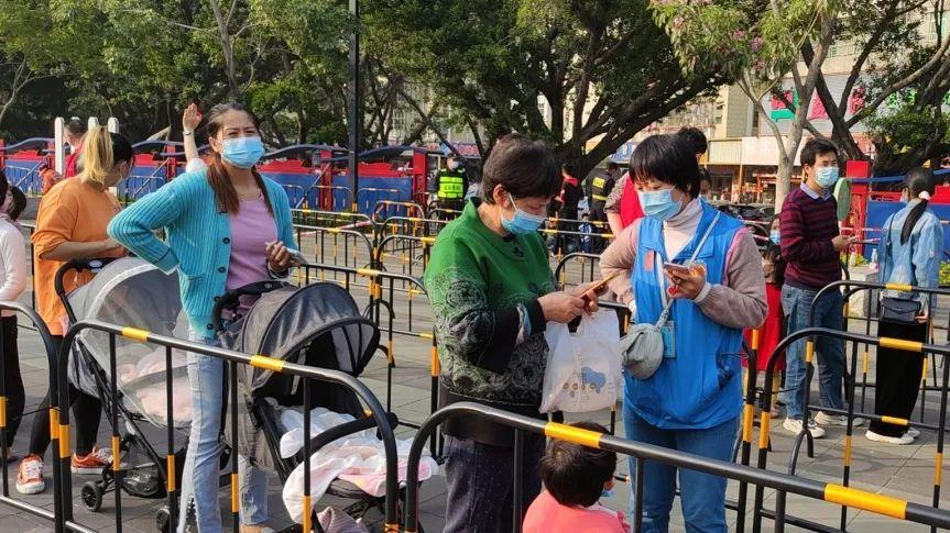 在核酸检测现场,工会专干们身着带有“宝安工会”logo的蓝色马甲,穿梭在排队的职工、居民中,帮忙填写信息、扫码登记、维持秩序、宣传防疫政策等,坚守岗位,认真负责,为疫情防控贡献工会力量。