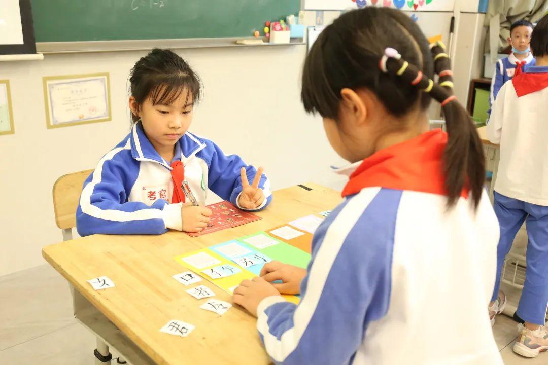 看!孩子们左右手并用,饶有趣味地拼凑,帮助汉字找到了自己的好朋友,还根据汉字的间架结构把它们送回了自己的“家里”。在拼凑过程中,孩子们充分感受中华汉字之美!