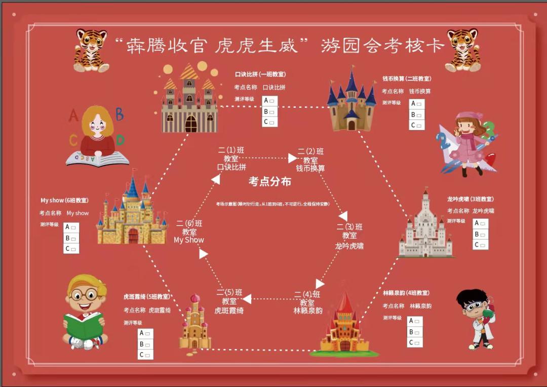 活动分为“欢乐虎”“智慧虎”“机灵虎”等八个关卡。以“语文+英语”“音乐+美术”“劳技+体育”“少先队+科学”等模式设置内容,力求游园活动做到贴近学生、贴近生活。