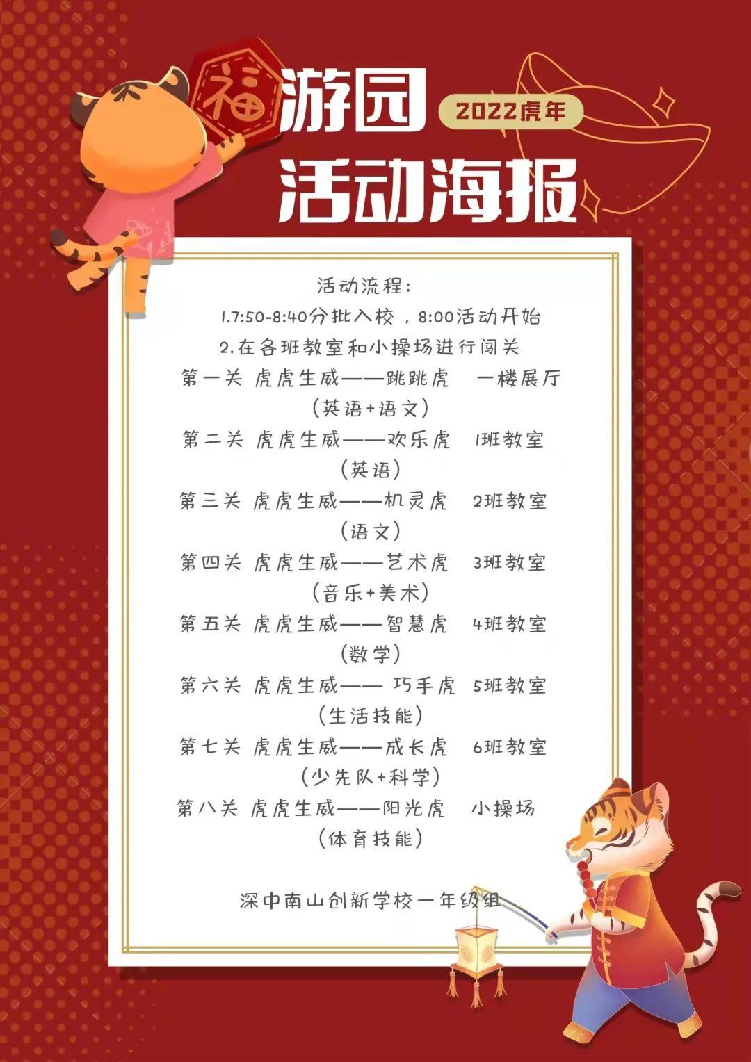 触摸着冬日里温暖的阳光,聆听着新年里欢快的笑声,一、二年级期末学科素养评价游园会接近尾声。作为深中南山创新学校的传统活动之一,期末游园会一直备受师生关注和喜爱,每年都吸引了大批师生共同参与。相信同学们在这场内容丰富的游园活动中,一定有所收获!也祝愿新的一年,同学们朝气蓬勃、努力前行、快乐成长,虎虎生威!
