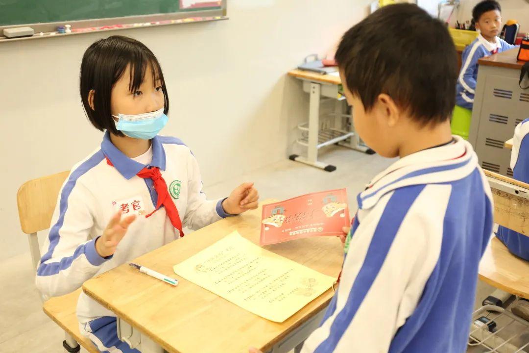 看,他们各个都在有序候考中,有的同学说:“我有点紧张,又有点期待。”有的同学说:“我要全考A,争取当个小考官。”而另一边的小考官们正严阵以待,等着伙伴们来通关呢!