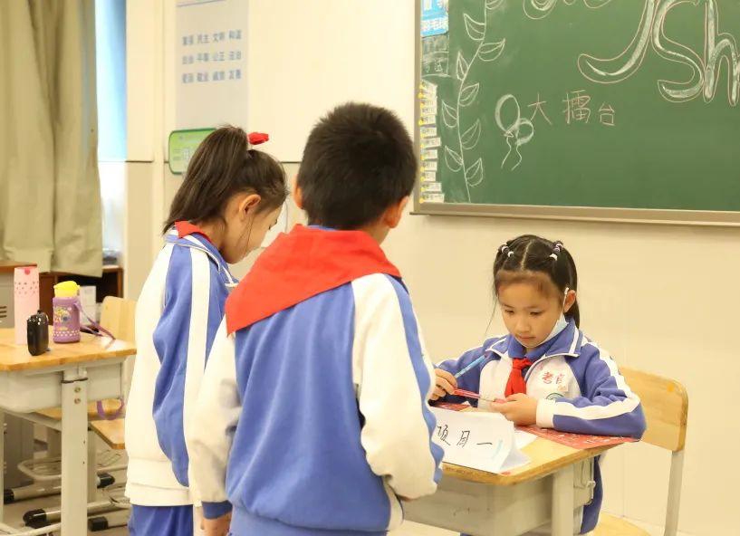 此关卡总共有两个分层项目,一是较为基础性的课本角色扮演;二是综合运用型的英文自我介绍。看!孩子们将英语课堂知识进行整合,再根据实际情况创编出属于自己的英文语篇,厉害吧?