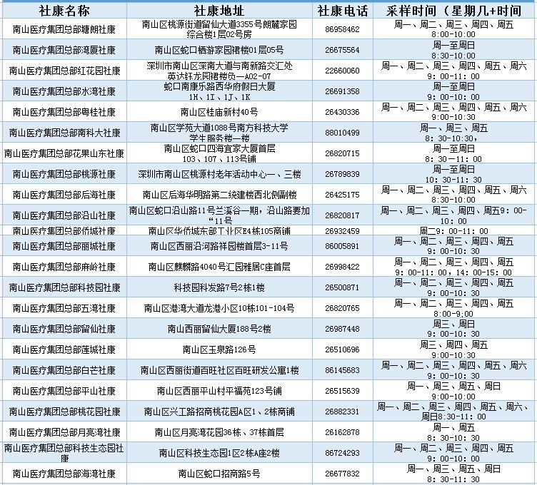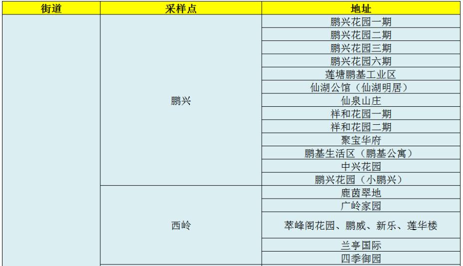 (参考深圳市卫健委免费核酸检测点查询结果)